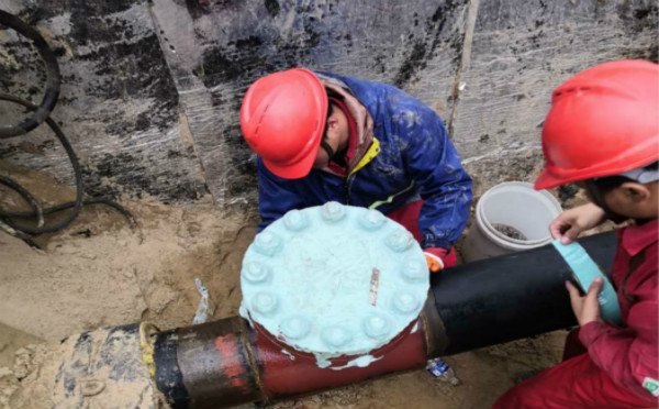 3)、選用與管徑或管件相匹配的粘彈體防腐膠帶寬度,覆蓋搭接不小于帶寬的10%,覆平、貼緊,無褶皺。