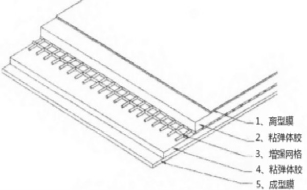 ?粘彈體膠帶是由離型膜+粘彈體膠+增強網格+粘彈體膠+成型膜五層復合結構組成的,分別如下: