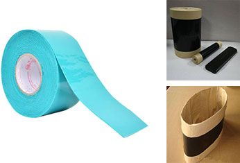 工藝結(jié)構(gòu):粘彈體防腐膠帶是有成型膜(布)+粘彈體膠+增強筋+粘彈體膠+離型膜組成;管道防腐熱收縮套(帶)是有交聯(lián)聚乙烯基材+熱熔膠型或壓敏膠型膠粘劑+離型膜(紙)組成。