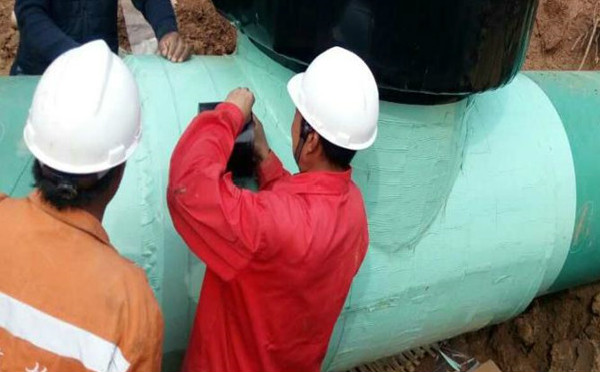 4、質(zhì)量檢查:復(fù)檢制樣需在 1 天后進(jìn)行檢測,管線防腐層質(zhì)檢須在纏繞后1天進(jìn)行檢測。測試剝離強(qiáng)度的拉伸速度應(yīng)≥50mm/min。