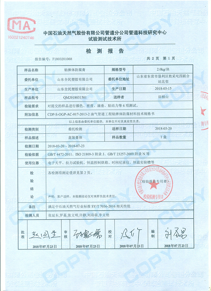• 粘彈體防腐膏檢測報告4